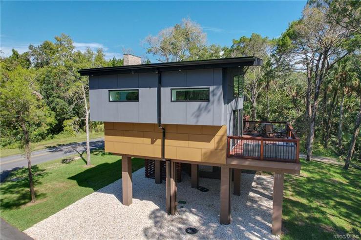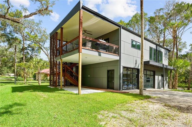 Walking distance to everything this "Florida Designated Waterfront Community has to offer. The multifamily contemporary homes sit on 3.5 acres and are perfect for your recreational activities while enjoying the privacy and convenience of multi-level wrap around balconies. With 3 separate living quarters the primary 3 bedroom 2 bathroom home and the companion one bedroom one bath with adjacent lofted studio apartment are each beautifully furnished and appointed. The double car garage with glass roll up doors is set up as an entertainment and gaming community gathering space. This unique property is perfect for vacation rentals, full time residence, group getaway, or all of the above . Seeing is believing.